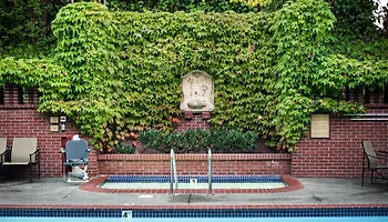 An outdoor swimming pool is on-site at the Stanford Park Menlo Park.